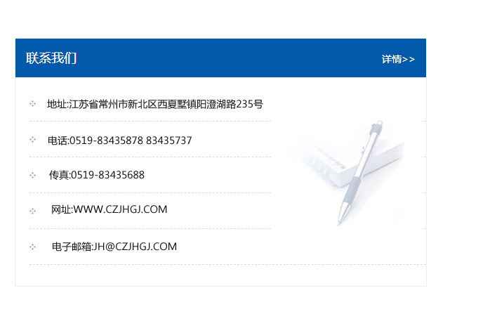 地址:常州市新北區友邦商務大廈1幢16、17層  電話:0519-85101652  傳真:0519-85112595  郵編:213022  網址:www_cz-jiayue_cn.xyjxbmw.com  郵箱:xiajifengaa@163.com